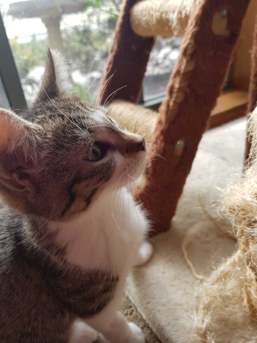 Amira's playful nature knows no bounds as she spends hours on end entertaining herself with toys, scampering up and down the home. Her boundless energy is contagious, bringing smiles and laughter to anyone lucky enough to watch her antics. Yet, after her exhaustive play sessions, Amira is perfectly content to recharge by finding a cozy spot for a well-deserved nap. Whether it be on your chair, snuggled up next to you, or watching the world from a window sill, she loves to observe birds outside or even catch an interesting show on the TV, adding a hint of comedy to her routine.