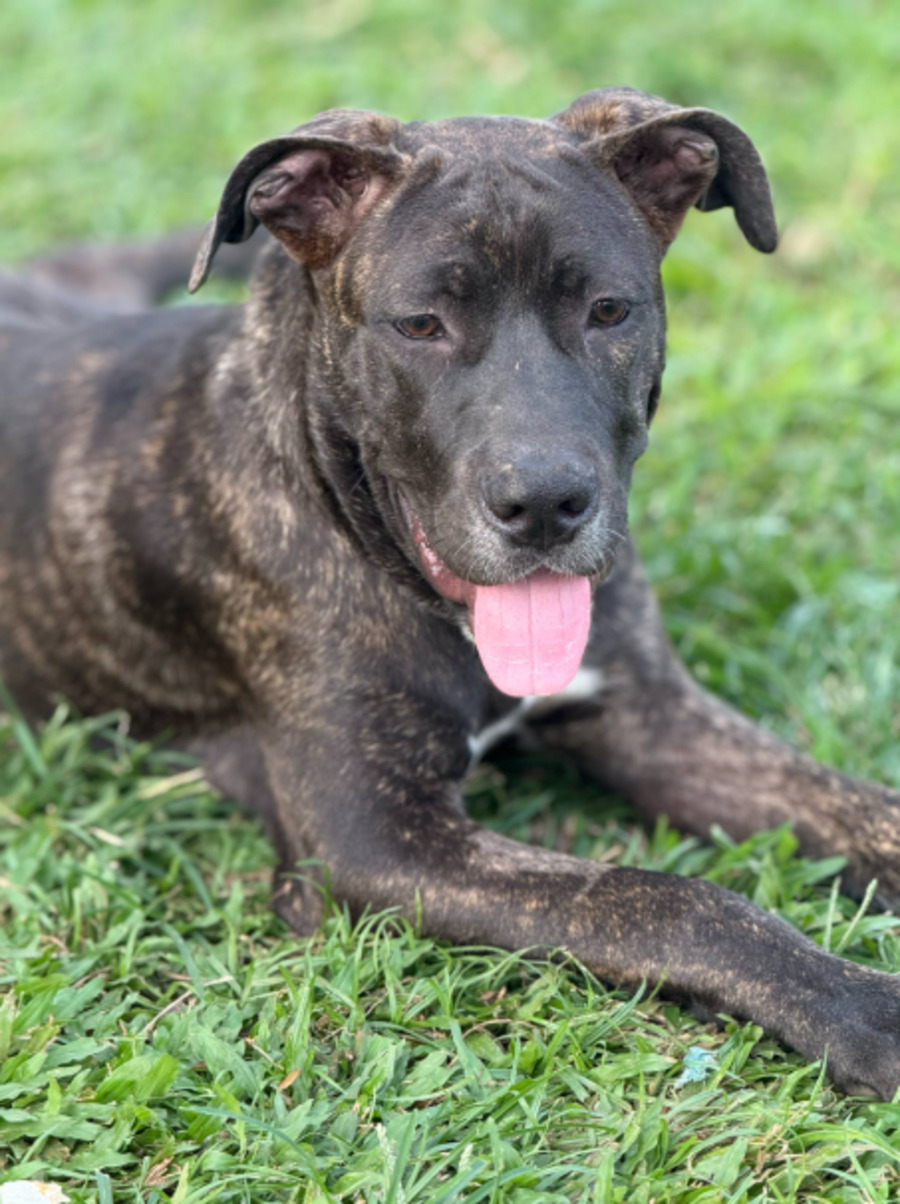 Meet Zarney!! The incredibly confident, friendly and fun loving goof ball. Zarney loves life and show's it every minute of everyday!! She loves making new friends and is 100% loyal to her people. Zarneys dad was a pure Neo mastiff and her mamma was a mixed of staffy x cattle dog, being so she definitely inherited both genes and is a mix between lazy couch potato and zoomie zest for fun and exploring. Anyone who is lucky enough to add this beautiful girl to their family will have the best life. Zarney is in care with Kids, cats, dogs and puppies of all ages and sizes and lovesssss everyone