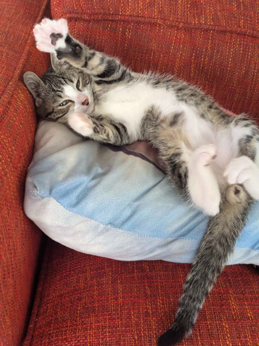 Lumiere is full of energy and curiosity! He loves exploring new spaces, chasing after toys, and engaging in kitten-sized adventures. His playful spirit makes every day fun and exciting. Lumiere may be full of energy, but when it’s time to relax, he’s all about cuddles. He enjoys snuggling up to his favorite people and is always ready for some lap time or belly rubs. As a little explorer, Lumiere is naturally curious and loves to learn about his environment. Whether it’s a new toy or a new space to discover, he’s always eager to check it out. Lumiere has a gentle, loving demeanor. He’s friendly and social with people and other pets, making him a great fit for families or multi-pet households.