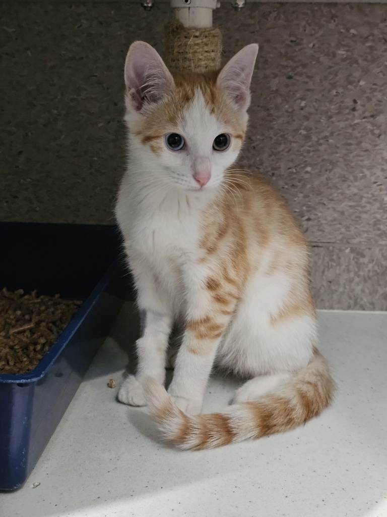 Hey there, I'm Mango. I'm a friendly and affectionate kitten who would suit most homes! My playful paws are always ready to pounce on anything that moves. I love playing with wand toys and mysterious shadows on the wall! When I'm finished playing, I love nothing more than finding a warm lap to curl up in.