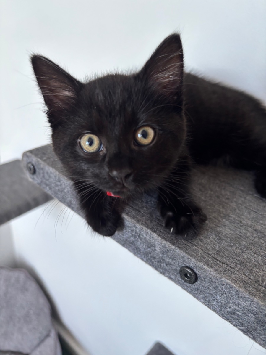 Meet Phoebe, the delightful little explorer who's ready to capture your heart! With her sleek, shiny black coat and irresistibly fluffy appearance, she's quite the charmer. Phoebe is an adventurous spirit who finds joy in every corner, and her inquisitive nature fuels her love for discovery and play.