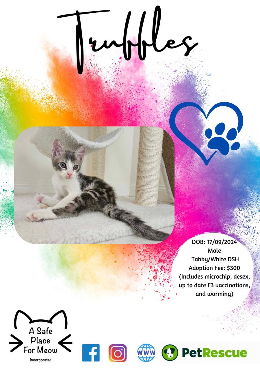 Our adoption costs cover initial health check, microchipping, desexing, up to date F3 vaccinations, and worming.