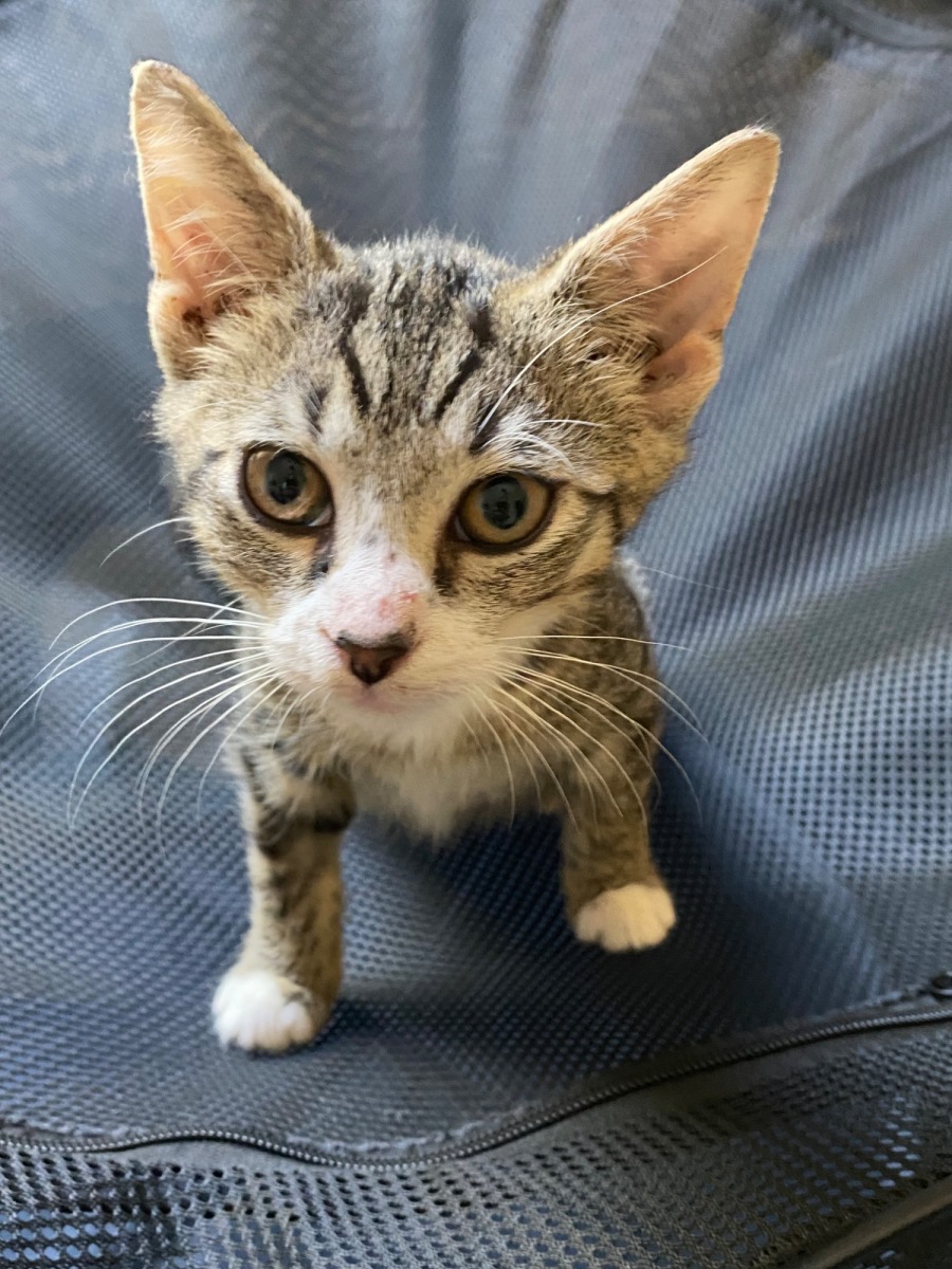 Mista is a tiny ball of fire, a spirited little kitten with a personality that shines as brightly as his playful antics. Rescued from the industrial area of Auburn, this little man has quickly transformed into a bundle of joy, filling every room with his infectious energy and charm. Despite his small stature, Mista possesses a larger-than-life character that captivates everyone he meets.