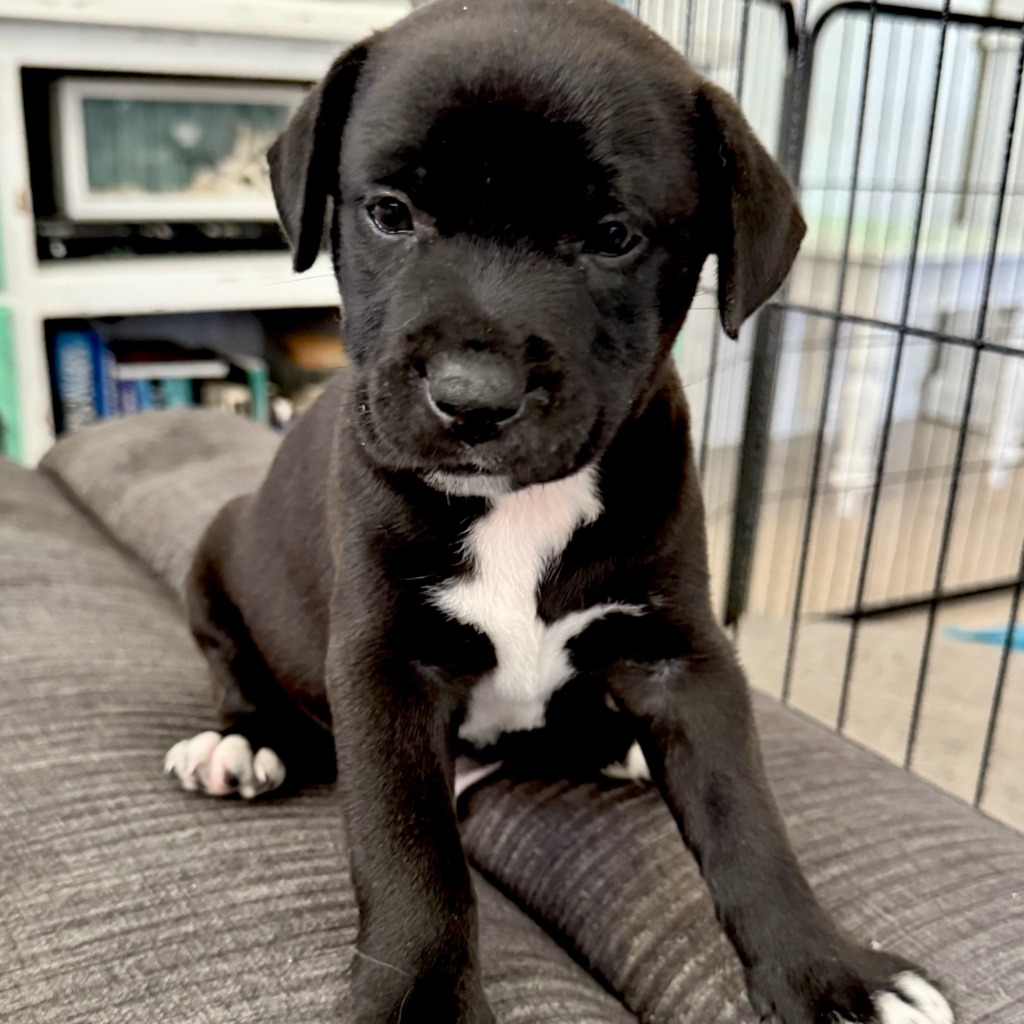 Simon is so sweet with a loving playful side. He is intelligent and learned to use the doggie door very quickly going in out when called for toilet time. Comes when called as a collective, pup, pup, pups.