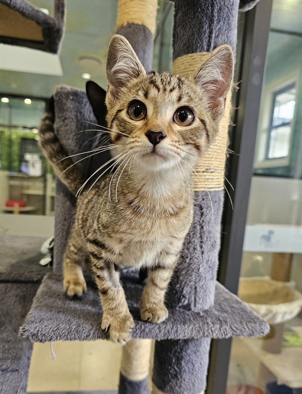 I have perfected the art of the irresistible purr. It's like my secret weapon for getting all the cuddles and chin scratches I could ever want. Life's just one big, exciting string of moments, and I'm here to make every second count - whether I'm chasing my tail or sharing some purr-fectly quiet time with my favourite humans. So, if you're up for a bundle of furry fun and a lifetime of companionship, please consider adopting me!
