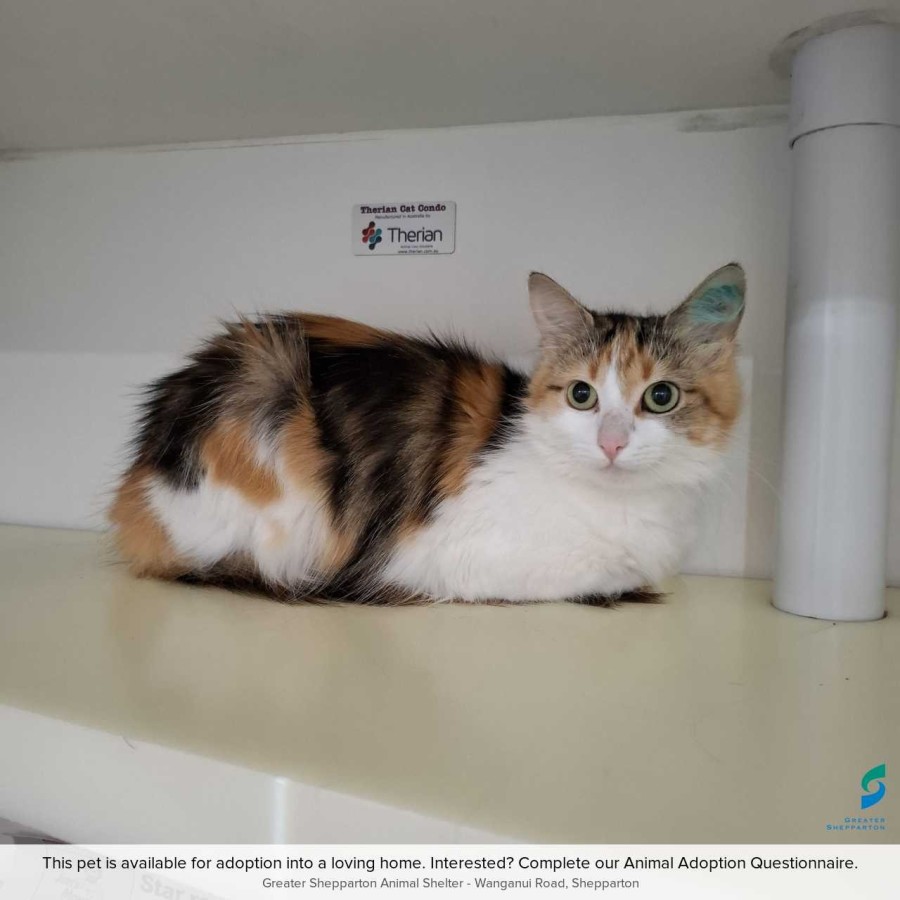 Crystal is a dazzling 1-year-old calico with a soft, luxurious medium-length coat that sparkles just like her sweet personality. She’s a gentle and affectionate cat, eager to find a loving family to call her own. With her calm demeanor and playful charm, she is the ideal companion for someone looking for a relaxed yet engaging cat.