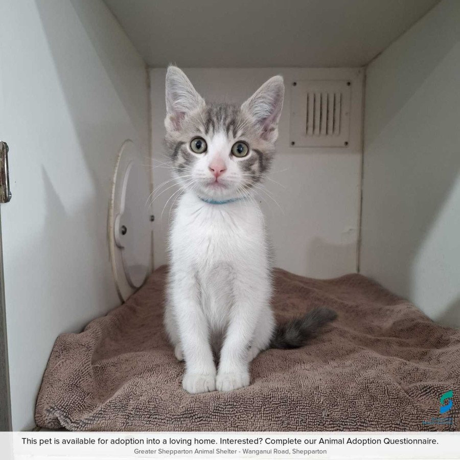 Cosmos is an adorable 2-month-old grey tabby and white kitten with a curious spirit and a heart full of love. His playful nature and affectionate personality make him the perfect companion for anyone looking to add a furry friend to their family. Cosmos enjoys exploring his surroundings, chasing after toys, and will happily curl up for a cuddle when playtime is over.