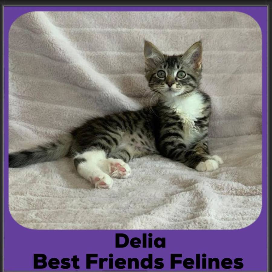 Delia is a confident Miss with a very sweet nature. Didi as she has been lovingly dubbed is an affectionate little girl. She will meow at you for attention and to ask to be picked up and snuggled. She enjoys playing with toys or a game of chase - despite being the smallest she gives as good as she gets!