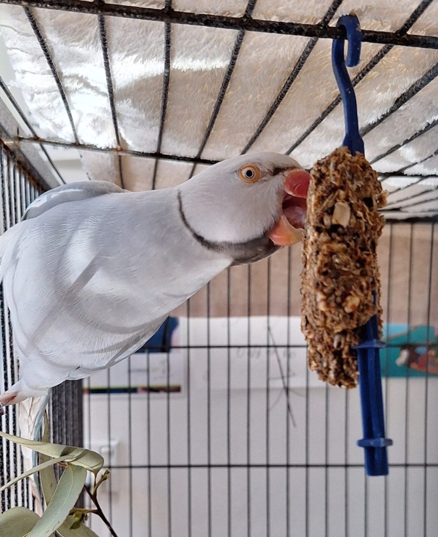 Lil Manuel is opening up and has even started to chat to us. He’ll take treats from your hand and would love a home to fly around in.