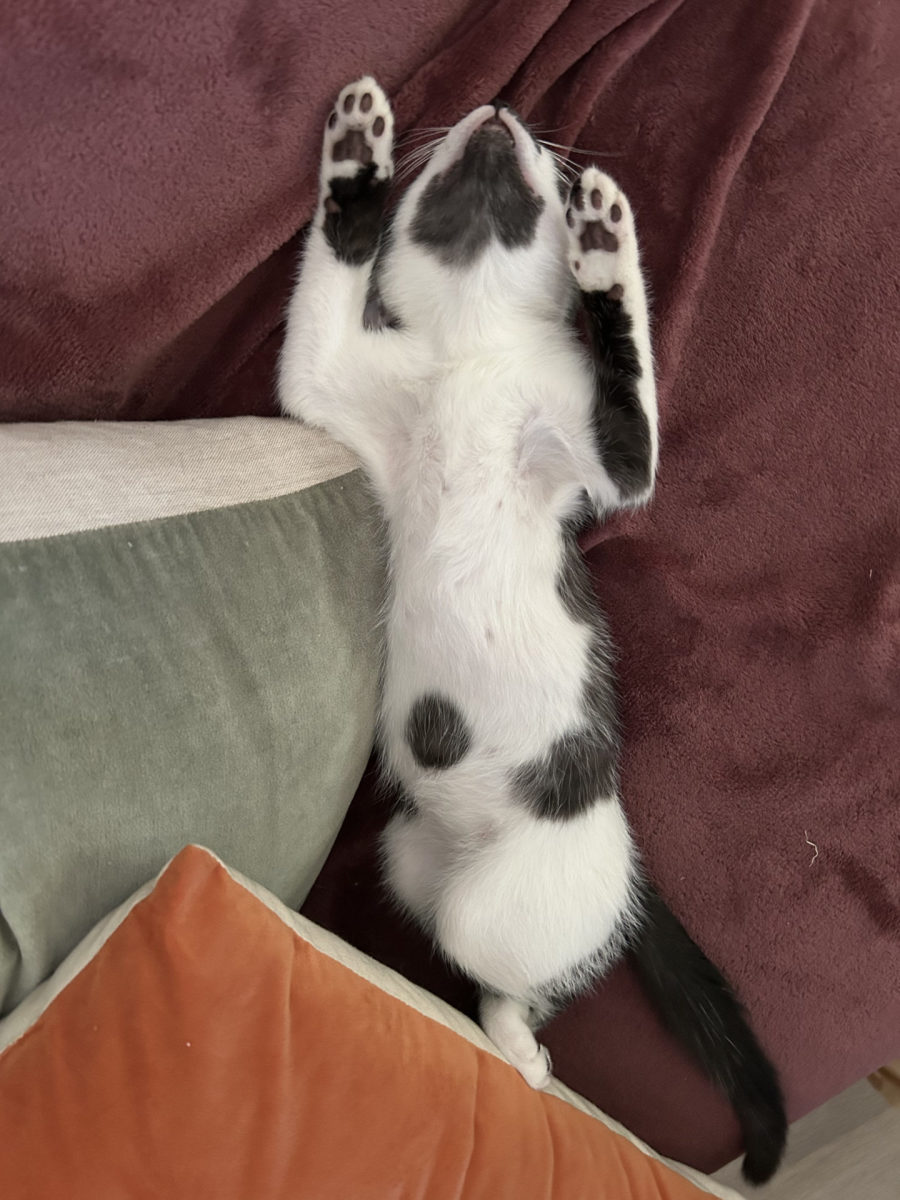 He loves to curl up with his foster family, or one of the other animals in the house when he is tired out.