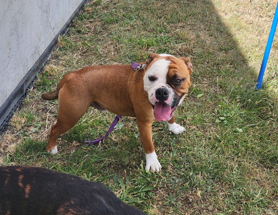 Chip is a sweet and shy bulldog mix who came into GAWS after having trouble sharing his owners love. Due to this chip is best suited to being the only dog in the home, but is absolutely able to play and socialise with other dogs! He is a playful and loving boy who can take time to come out of his shell, but once he does LOVES to play. Chip is looking for a home with everyone preferably over 10 years who can understand a dogs boundaries. Chip hasn't been tested with cats or pocket pets. If you think this handsome man may be your new best friend, please apply online.