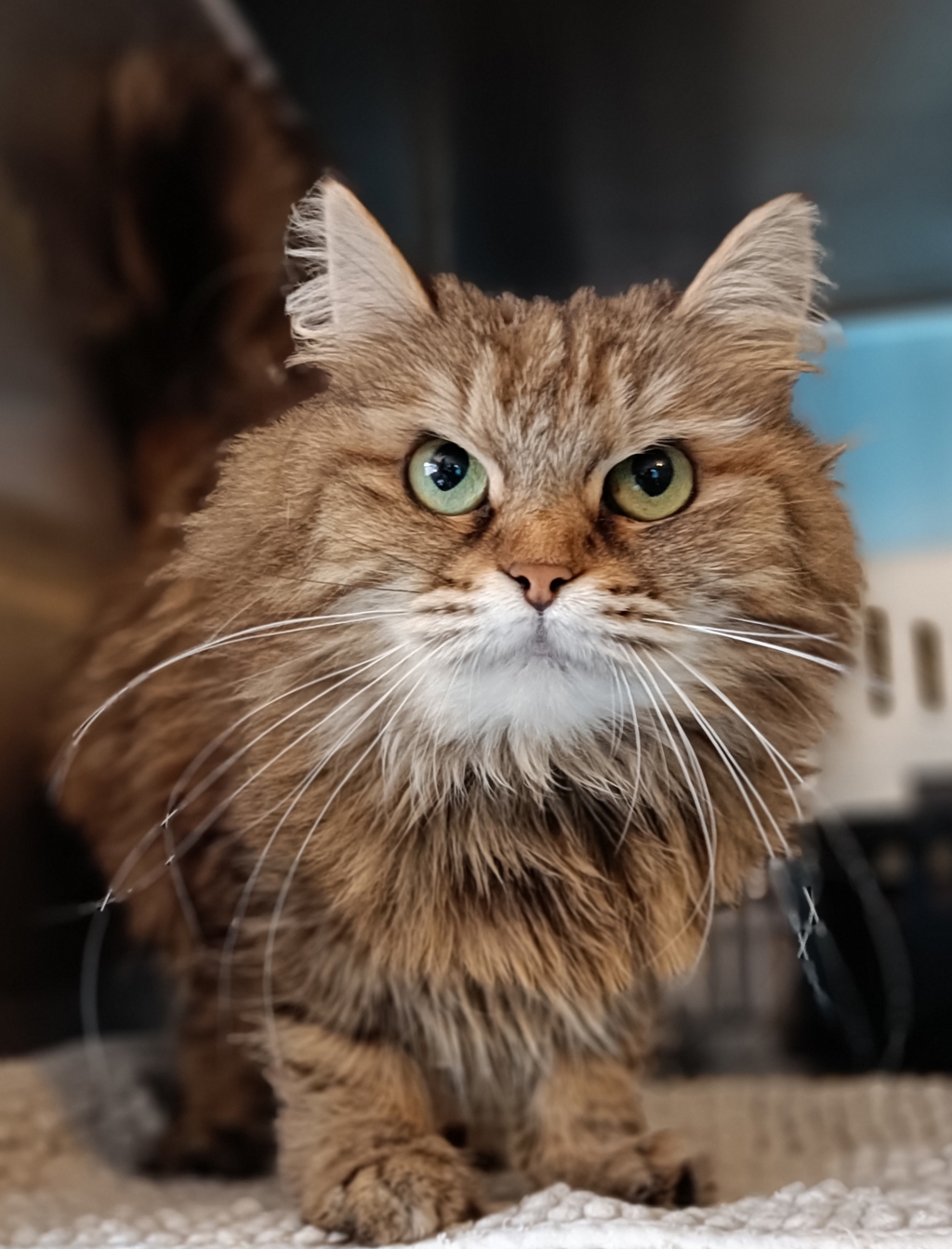 Meet Ava, a sweet and resilient Siberian female cat who came from an incredibly neglectful background but has since recovered from illness and blossomed into a lovely natured girl. She may have a serious face, but don't let that fool you - Ava has a heart of gold. This fluffy girl requires regular grooming to keep her beautiful coat in top shape, but she is more than worth the effort with her affectionate demeanor and charming personality.