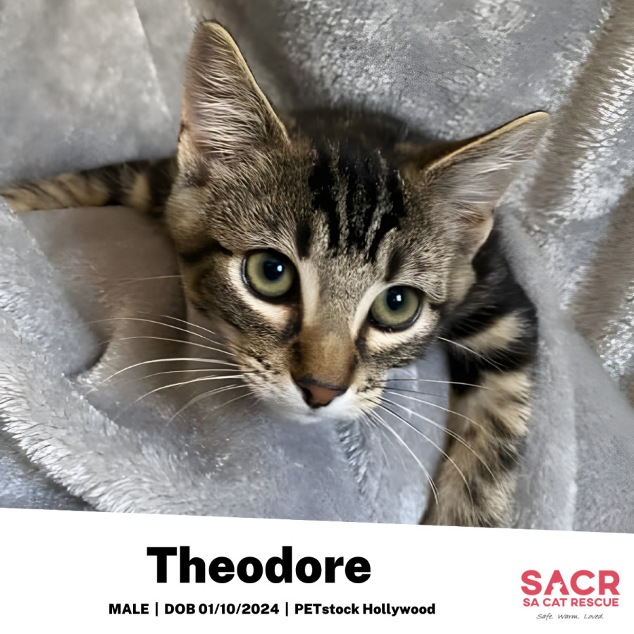 Meet Theodore, the epitome of smoochy charm all wrapped up in an adventurous package! This lovable and playful feline exudes warmth and sweetness, enchanting everyone he meets with his affectionate purrs and gentle nature. Whether he's exploring new nooks or batting at his favourite toys, Theodore's zest for life is truly catching.