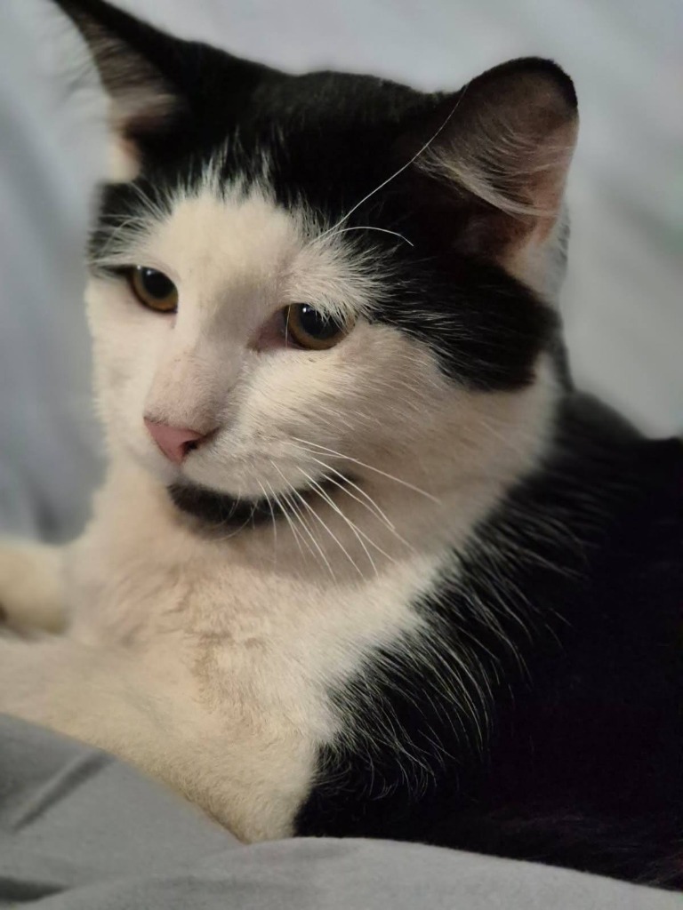 Though he’s a bit reserved at first, he quickly warms up and joins in the fun. Button isn’t the biggest snuggle bunny, but he absolutely adores pats and scratches, making him the ideal companion for someone who loves gentle affection. He’s ready to find a home where he can grow and thrive!