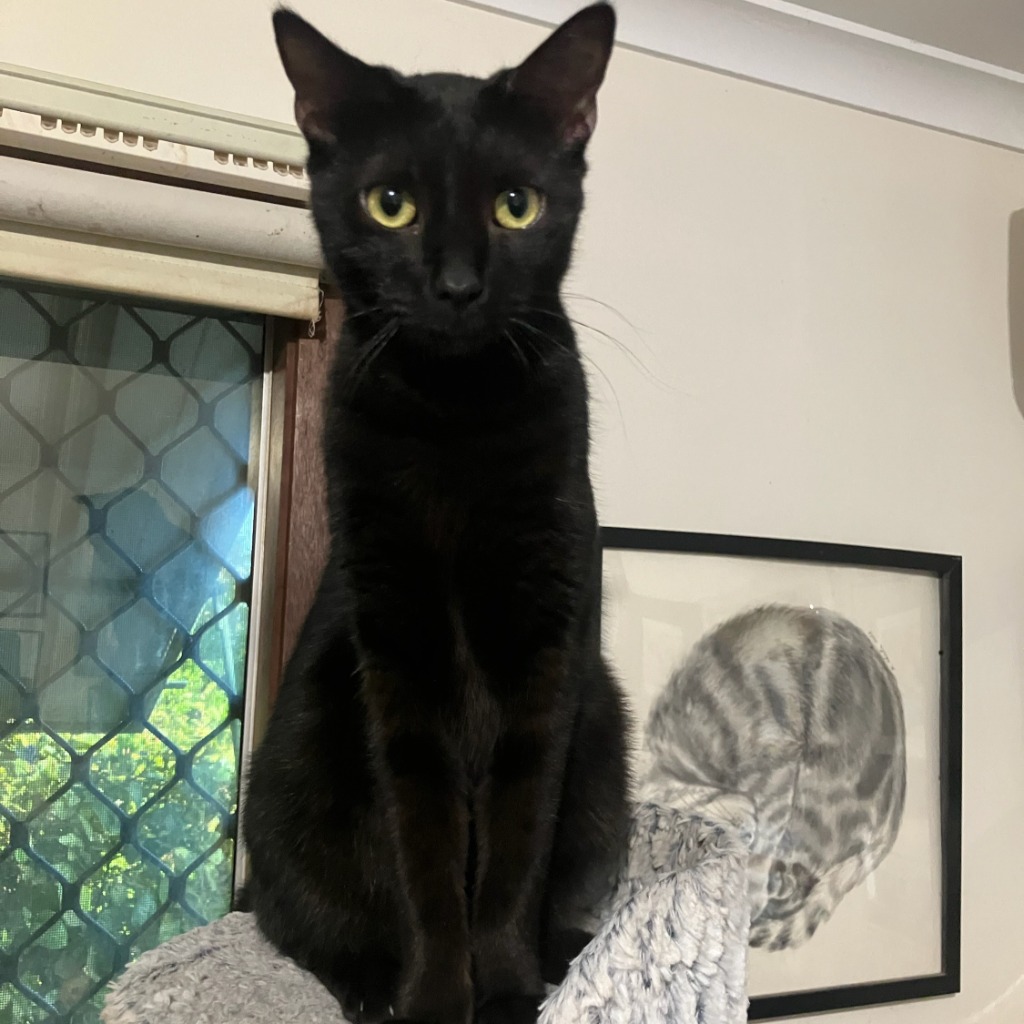 She has a black shiny coat and wears it well - a hark back to her regal past. Having shared her foster homes with other felines she would ideally love to shine by being the princess and only cat.