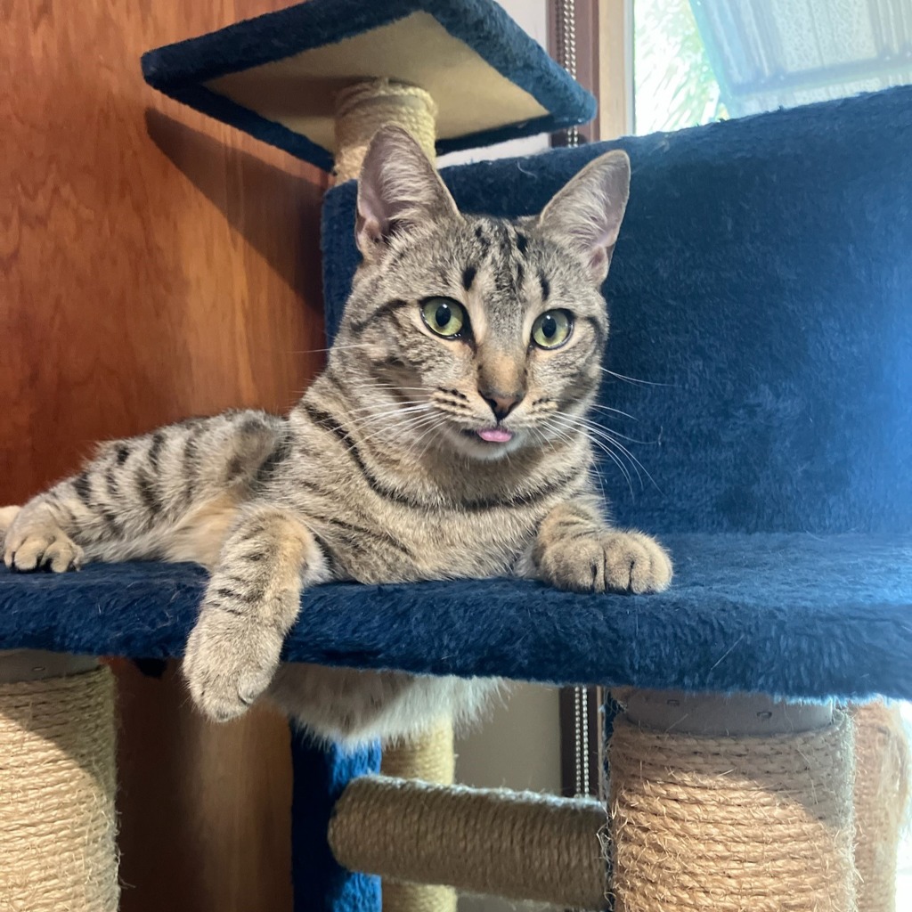 She started her journey in care seeking the highest place in the house (on top of the air conditioner) and in no time was seeking love from her carer - a fast transition! You will often see her with her tongue sticking out. It's like she knows that it makes her look super cute! She has stunning green eyes which she also uses to her advantage by looking at you with “come to me” eyes.