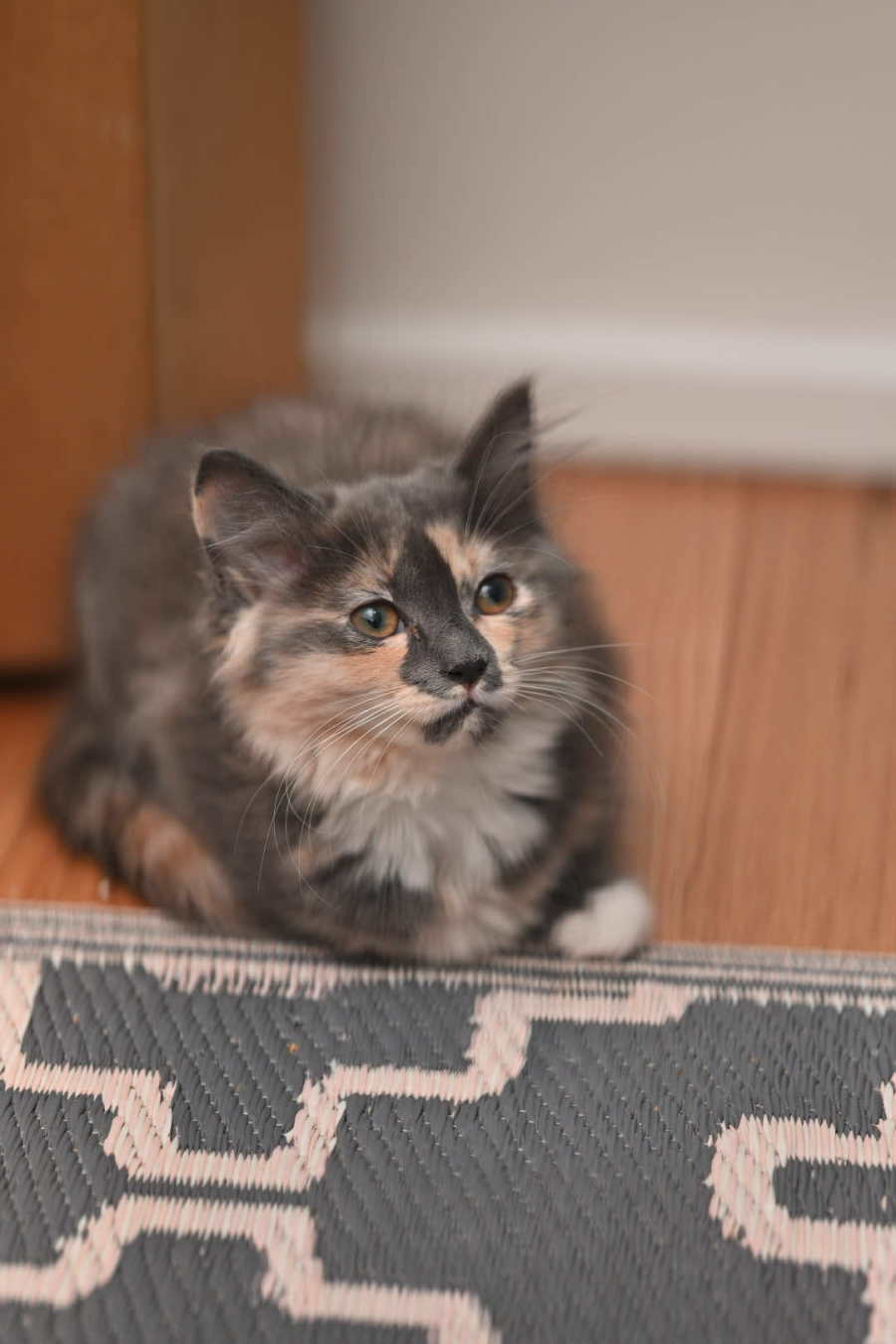 But Ember isn't just about play—she's an excellent cuddle companion, ready to curl up next to you and share moments of warmth and comfort. Her gentle and affectionate nature makes her a delightful addition to any home willing to earn her trust and share in her playful spirit.