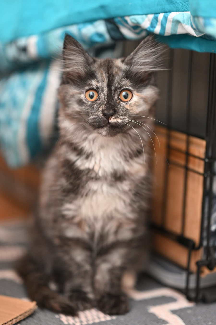 Meet Blaze, a delightful Tortie Domestic Medium Hair whose playful personality and curious nature make her a truly enchanting feline. As one of a litter of five, Blaze is used to a lively home and adores interacting with her humans. If you're seeking a cat who will engage in entertaining antics and explore her surroundings with a sense of wonder, Blaze is the perfect match.
