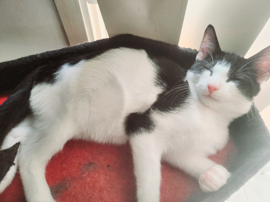 Renfield is a male kitten with a gentle and tender spirit. He was found injured and abandoned at a vet clinic, but despite his rough start, he’s learnt to trust and show his sweet personality.
