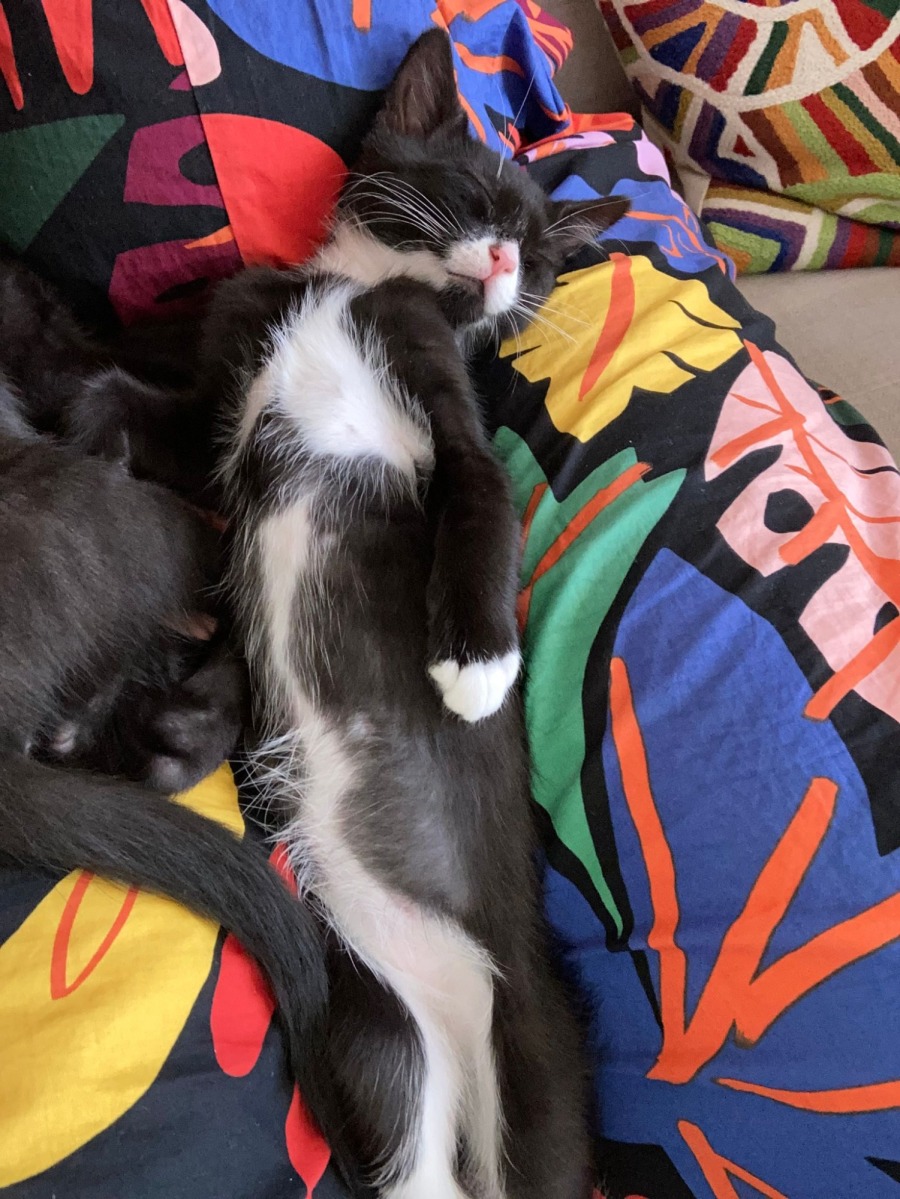 He can be found chasing toys or his brother Darcy, zooming around the house, or winding down with a snoozefest cuddle!