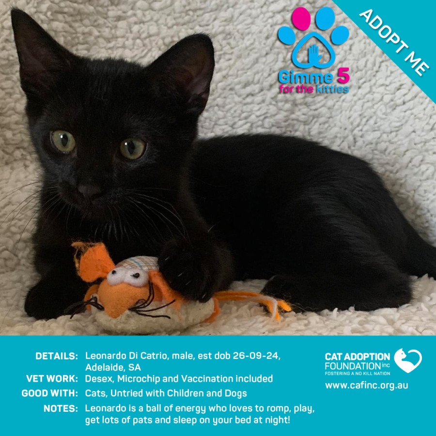 Donate to Leonardo Di Catrio at Cat Adoption Foundation Incorporated via Shout