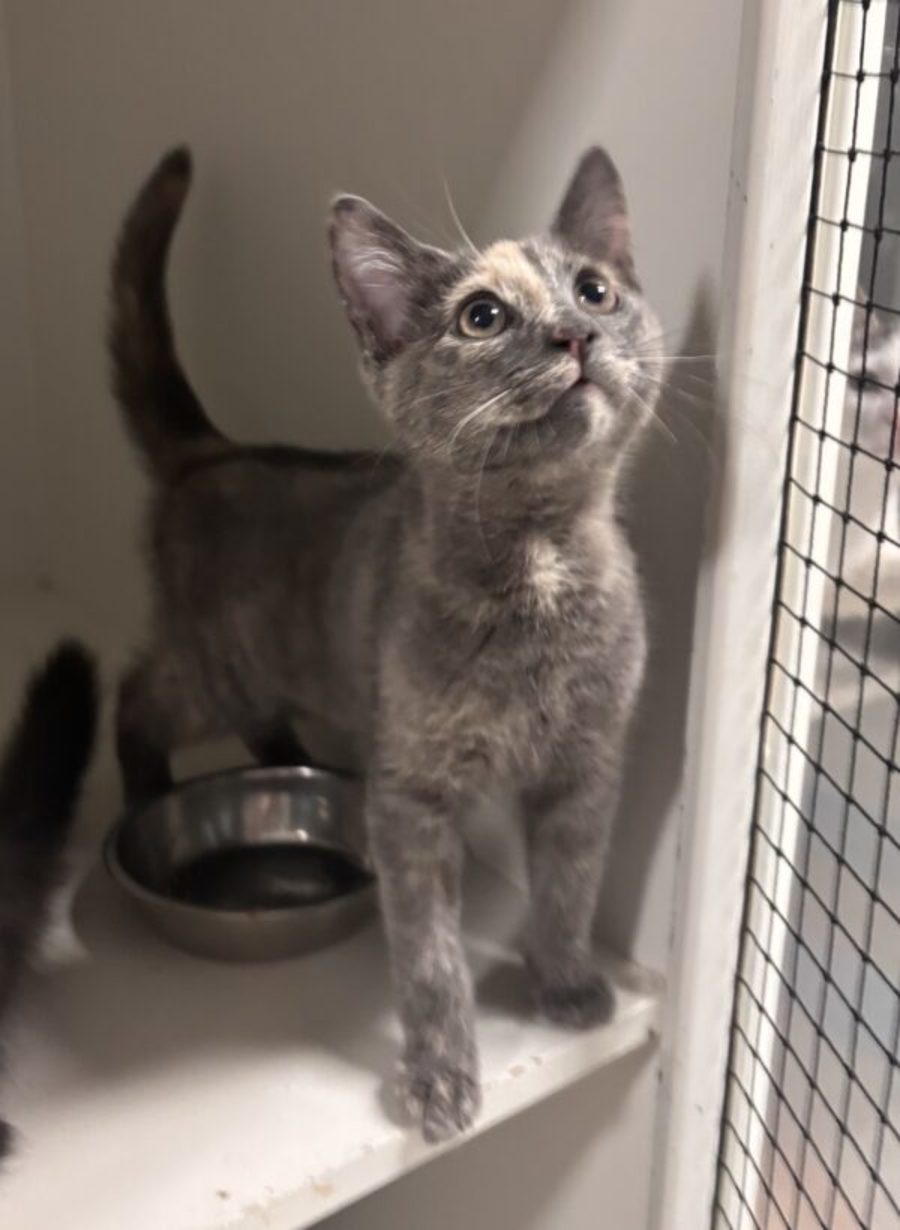 Meet Papillon – a gorgeous three-month-old female kitten with a striking muted tortoiseshell coat and a heart full of love. Born in our care, her journey started with a bit of a twist – her mum became unwell and couldn’t feed her. Luckily, another nurturing cat stepped in as her surrogate mum, and under her care, Papillon absolutely thrived. She’s grown into a healthy, happy kitten who’s ready to take on the world (and your heart)!
