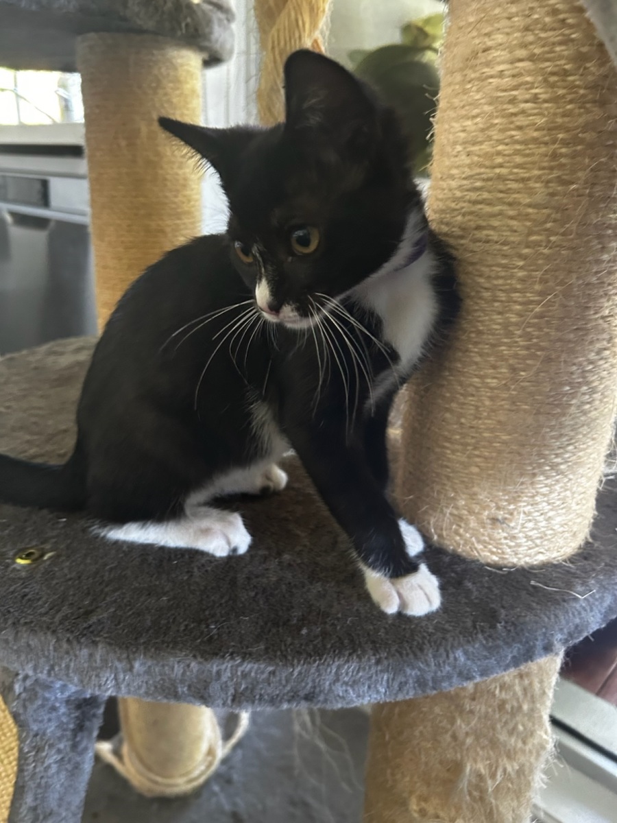 Meet Dot, a delightful and playful cat with a heart full of curiosity and a spirited zest for life. Since her tiny beginnings in foster care, she has grown rapidly, developing into an energetic and inquisitive companion. Her boundless curiosity keeps her exploring her surroundings while her whimsical charm captures the hearts of everyone she meets.