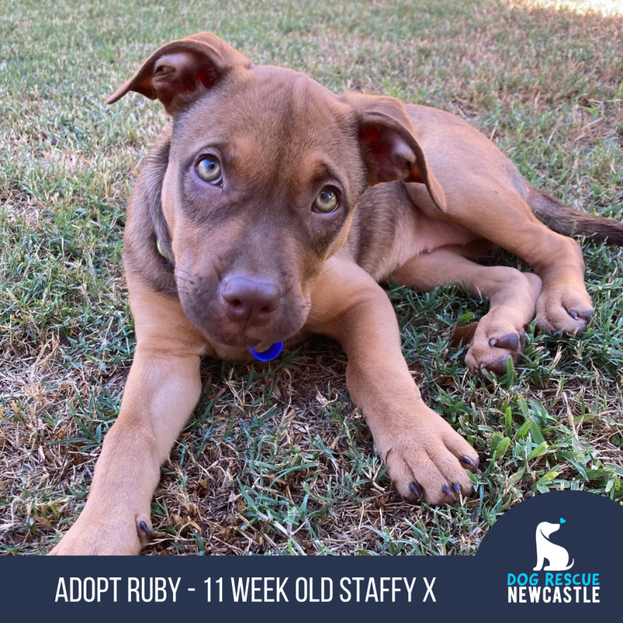 Meet Ruby. Ruby is an 11-week-old female Staffy cross puppy.