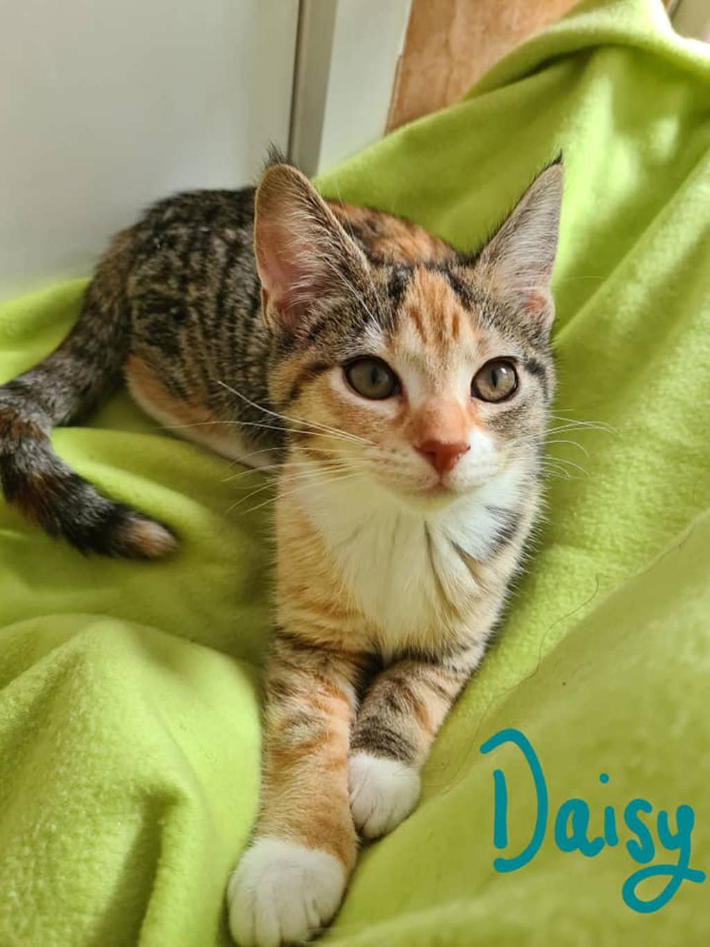 Daisy is an energetic little ball of fluff, she loves exploring and climbing. She isn't afraid of anything, she'd be fine in an established family with cats, dogs and small humans alike. If you want a cat that loves playing, zooming, and anything in between this little clown is for you. Daisy does not want to be an only child.