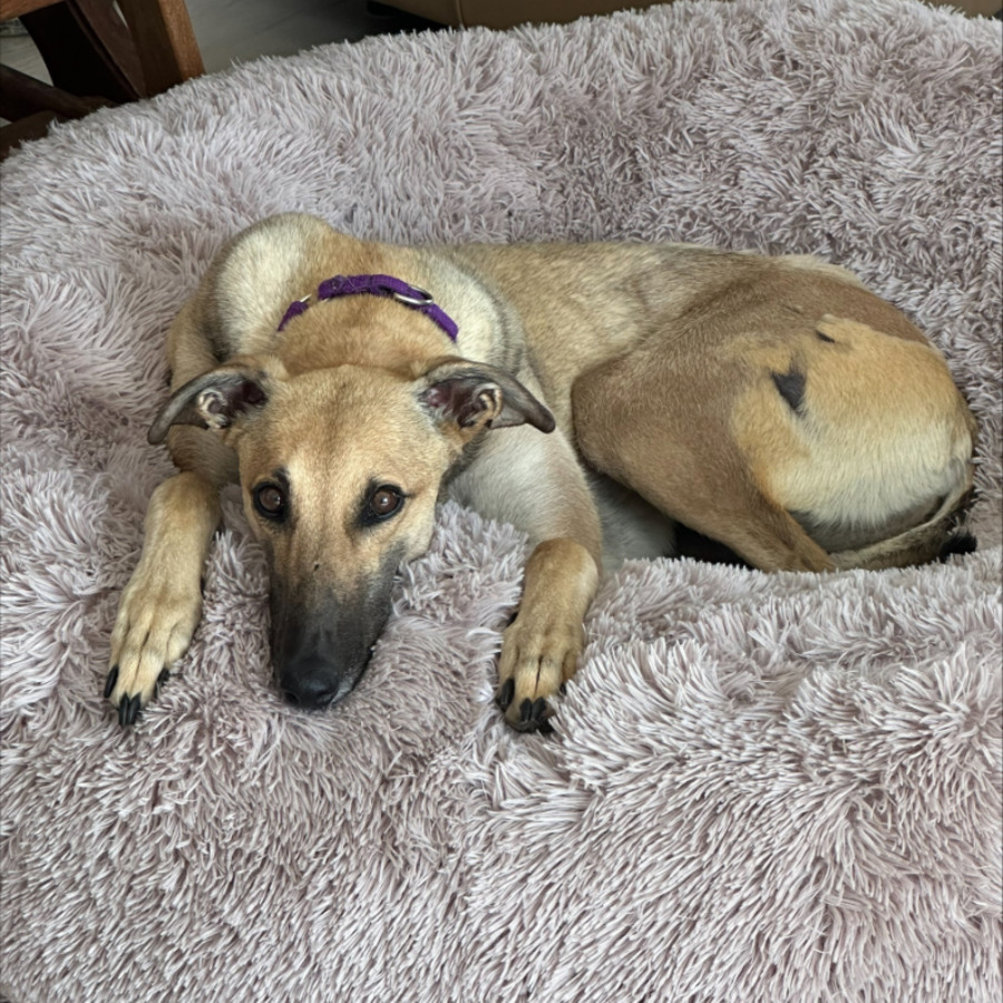 Meet Tully, a sweet and affectionate female greyhound! She walks well on a leash, though she can be startled by loud noises like trucks or busy cars. Tully enjoys her daily 5 km walks, where she’s calm around other dogs and people, though she may be a bit wary if approached from behind.