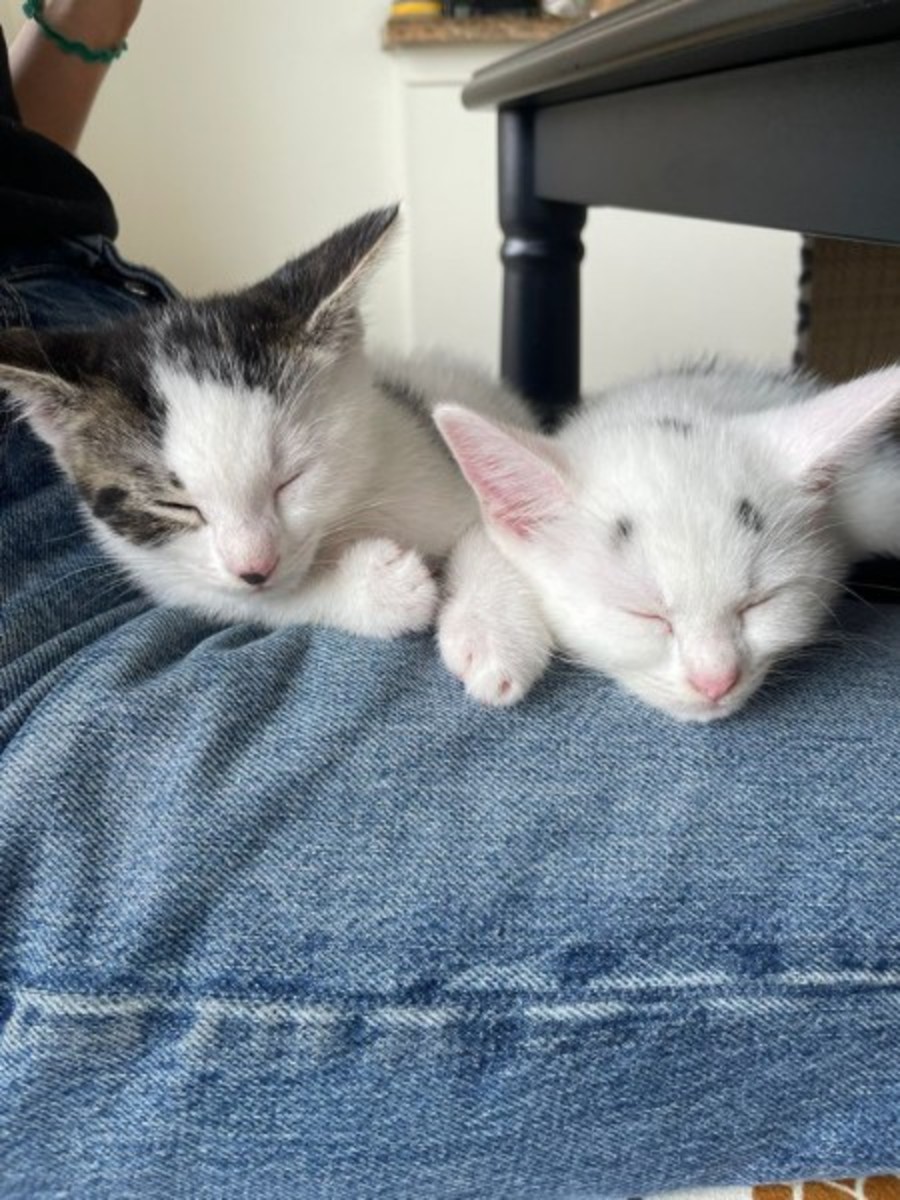 Pugsley, equally sweet and irresistibly adorable, may be a little more reserved, but she is no less charming. She looks up to her sister and has blossomed with Wednesday’s gentle guidance. Pugsley is affectionate and loves cuddles, and after a day of play, you’ll often find her snuggling up with Wednesday for a cozy nap. She’s a true beauty with her soft fur and captivating eyes.