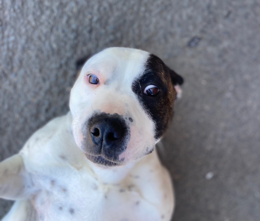 Meet Misty, an exuberant and joyful 4-year-old black and white Staffordshire Terrier mix with a zest for life that's simply contagious! Misty’s boundless energy and love of play make her a delightful companion who’s always ready for an adventure. She has a beautiful smile that lights up her face when she’s engaging with her handlers, showcasing her joyful personality.