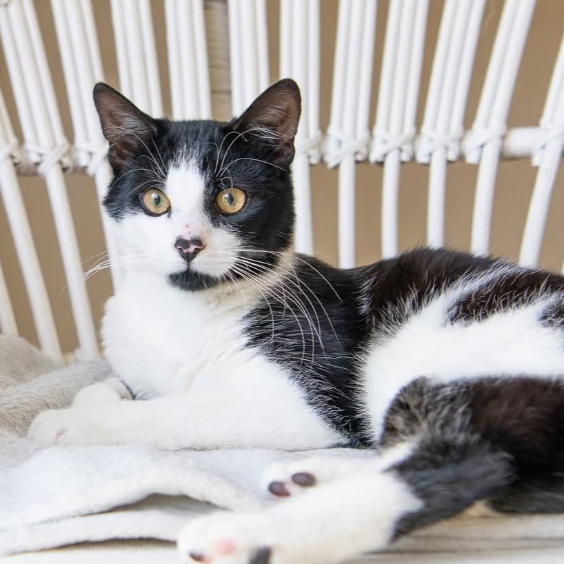 Leo is our adorable little ball of energy! This playful kitten is full of life and has definitely earned the nickname “pocket rocket” during his time in foster care because of his speedy antics! While he’s always up for a game, Leo also has a sweet, cuddly side. You’ll often find him snuggling up on your chest, getting cozy and purring loudly—his purr is one of the sweetest sounds ever! Despite a rough start to life, Leo is living it to the fullest and is ready to make friends with everyone, including other pets! He might be a little shy at first, but give him a day or two, and he’ll be bursting with personality, filling your home with joy and playful energy! Leo also loves to chat and will definitely make sure you know when he’s craving some attention!