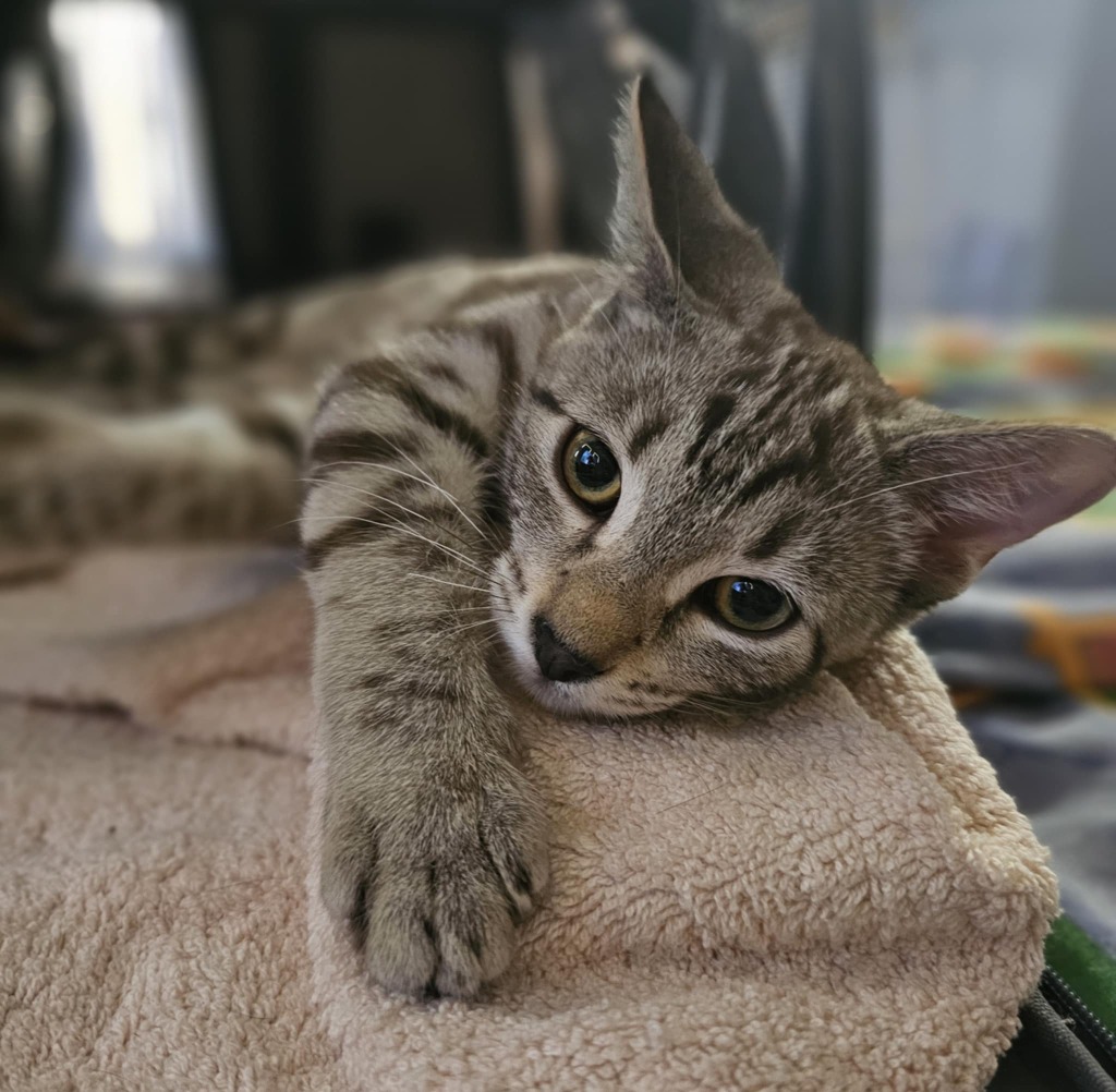 My name is Beckett and I am a swirly grey and chocolate tabby! I found myself lost with my sisters Carmella annd Aubrey and brother Winston and we were handed over to the pound. No one came forward to claim us - so now we are in foster care with SAFE Hedland. I am lucky to be so cute; I am described as being the more shy of my siblings but some socialising in foster care will help shape my purr-sonality. If you may be keen to know more - please apply today!