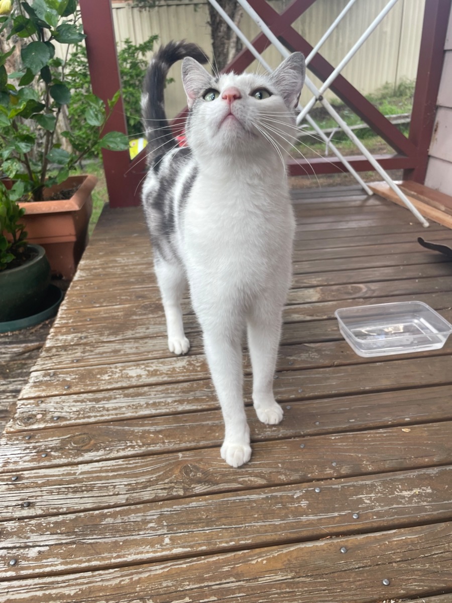 He is located in Ingleburn, NSW. As he was not microchipped by his previous owner, we are unsure of his date of birth, but he has beautiful clean teeth and is clearly a very young cat, approx 2 years old.