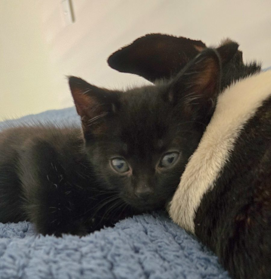 I get along with the adult cats and dogs in my foster home. I don't annoy the adults but happy when they play with me. I would be fine with an older cat too. I do love the dogs and like to snuggle up next to them.