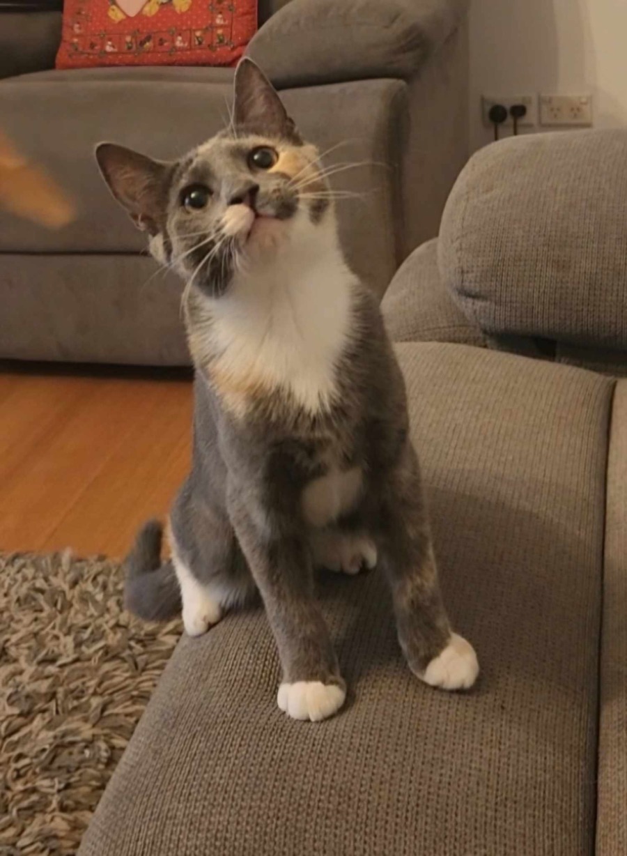 Being a Manx mix you will find Vouge to have a lot of the super friendly and loyal traits of the Manx breed. She will follow you around like a little loyal dog, enjoy time hanging out, and snuggling up on the couch with you for pats and scratches. She has a lovely little purr motor which she will turn on if you so much as look at her. Vogue really is the most amazing little kitten you will ever find.