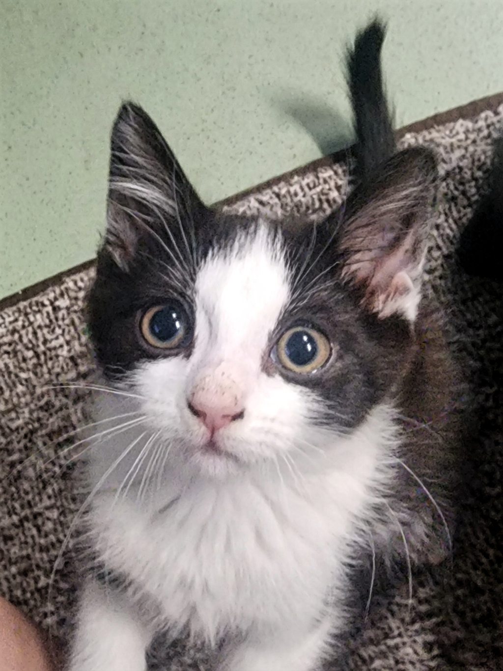 Hello, I'm Selah! I'm a kitten with a personality as big as my heart. I'm sweet and friendly, always ready to greet you with a soft purr. Playtime is my favourite time of the day. I love to chase after toys, tumble around, and show off my goofy side. I'm also energetic and curious, always ready to explore and discover new things. I might be a little ball of energy, but I'm also a cuddle bug who loves to snuggle up and get cozy. I promise to fill your life with laughter, love, and lots of fun. Adopt me and let's start our purrfect adventure together!