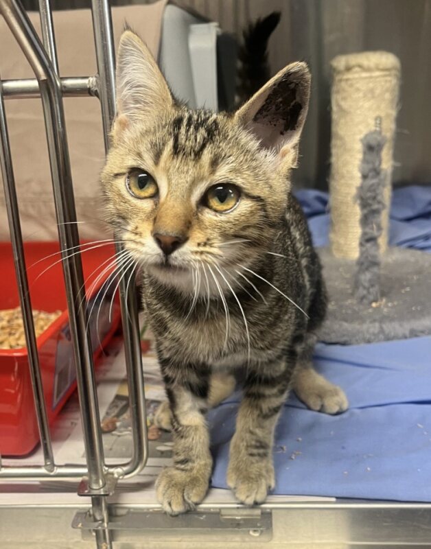 Hello there, my name is Sprinkles! I'm a petite and playful little kitten with a soft, short coat. I'm a Domestic Short Hair girl and I'm just 3 months old. I have a high level of energy and playfulness, so I promise to keep you entertained with my antics. I love to chase, pounce, and play, but don't worry, I also enjoy my nap times. I have no known issues with children, so I can fit right into a family with youngsters or be your single fur baby, the choice is yours! I'm just looking for a home where I can give and receive lots of love. Don't be fooled by my size, I have a huge personality and a big heart. I'm ready to fill your home with laughter, love, and a little bit of mischief (the cute kind, of course!). I hope you'll consider making me a part of your family. I can't wait to meet you!