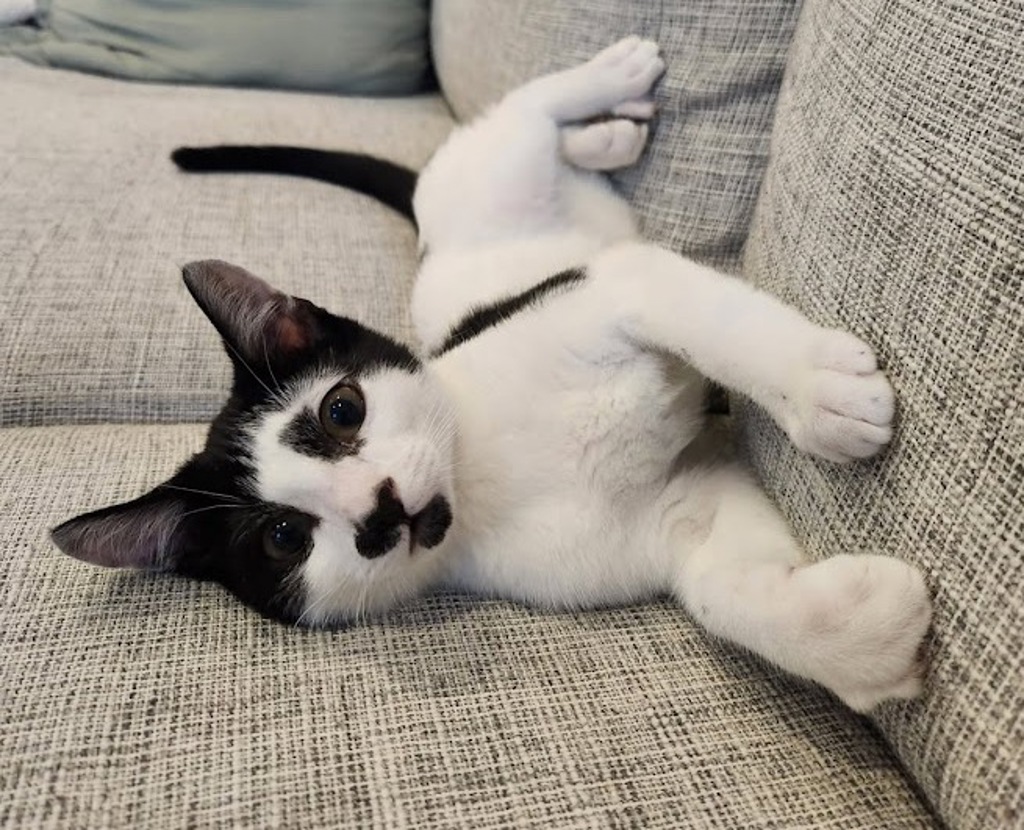 Simon is a playful, goofy guy who's always ready for fun! Whether he's chasing after toys or showing off his silly antics, he's guaranteed to brighten your day with his endless energy and charm. After a busy play session, Simon loves nothing more than curling up in your lap for some quality snuggle time, purring contentedly as you give him all the attention he craves.