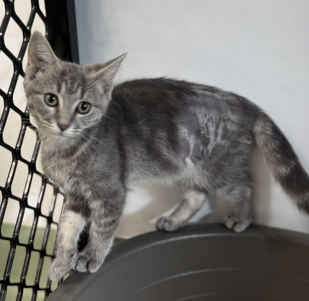 Hello there, I'm Peony. I'm just a little kitten with a big heart. I'm a bit shy at first, but once I get to know you, we'll be the best of friends. I love playing with my toys, especially when it's with someone I trust. I get along great with other cats, we have so much fun together. I'm a bit timid around younger children, but older ones seem to understand me better. I'd love to find a family who will take the time to play with me and help me come out of my shell. I promise to bring joy and laughter into your life with my playful antics. Adopt me, and let's make wonderful memories together.