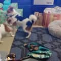 - Dexter gets anxious when someone leaves the house even when someone is still with him at home, he may try and run out the door, but settles after a short time.
