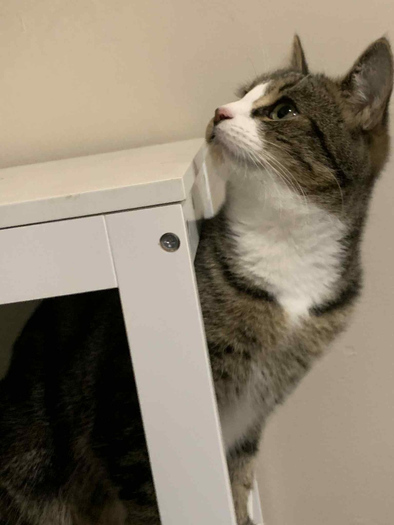 With a soft spot for toy mice and anything that crinkles, Merlyn brings the fun with his delightfully gentle murder mittens, especially when it’s time for the tapping hands game. If you're looking for a playful, purry companion with a slightly mysterious streak and a love of couch sitting, Merlyn might just be your guy.