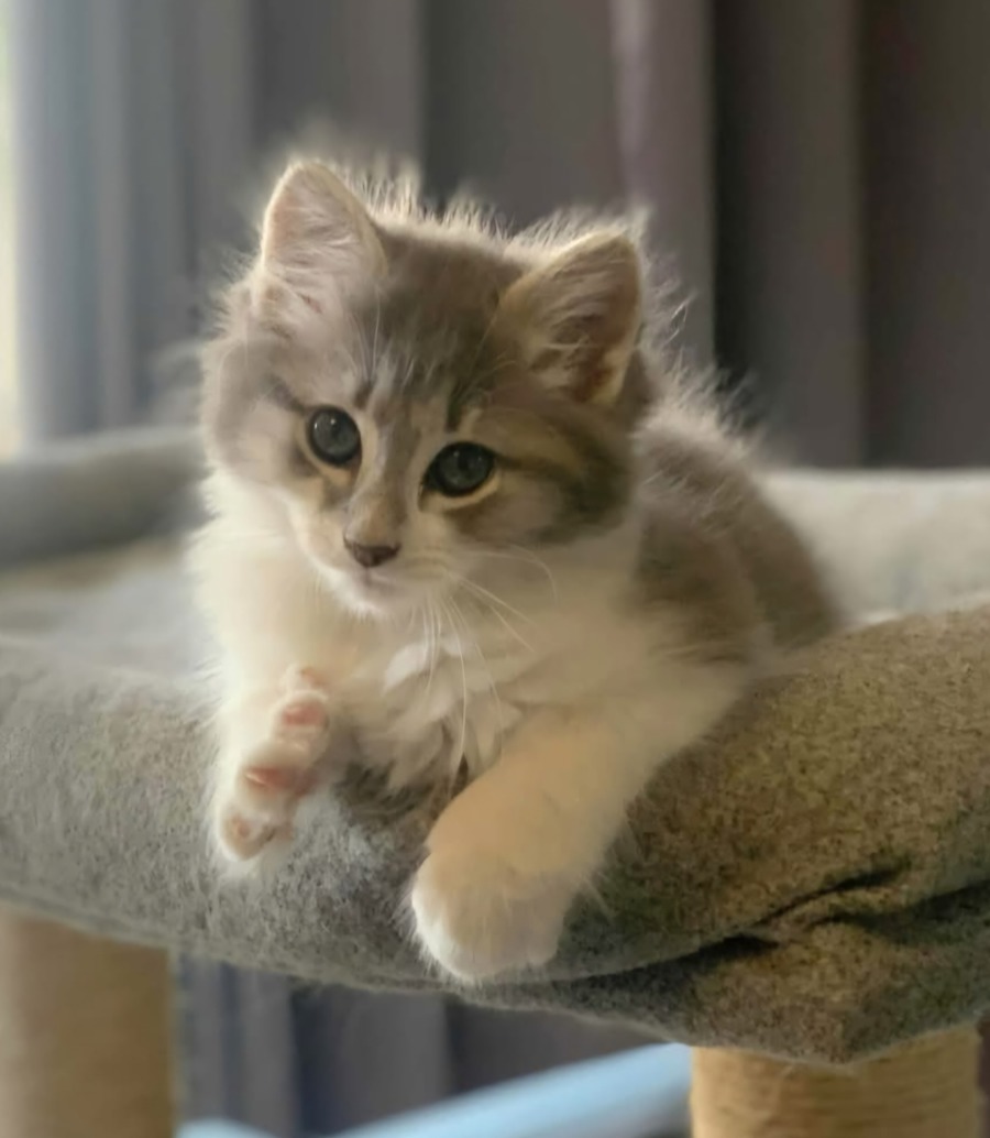 My name is Nimbus and I am a happy playful kitten. I can be homed with children and other cats. I haven't been tested with dogs. I must be kept indoors only for my safety.
