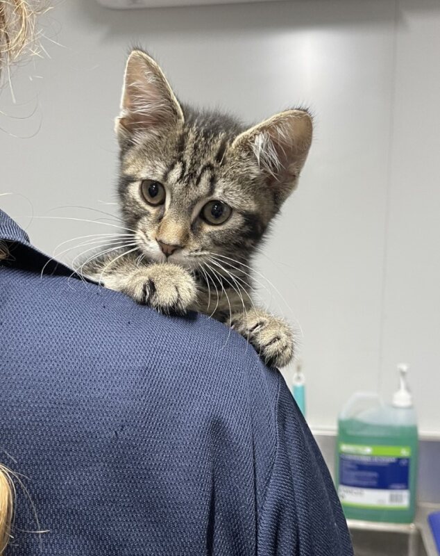 Hello there! My name's Tigger, a 3-month-old Domestic Short Hair kitten, and I'm on the prowl for my forever family. Being a male kitten, I'm full of energy and love to play. Chasing balls, exploring nooks and crannies, or pouncing on crumpled paper, fun is always on my agenda! Although I'm quite the lively little guy, I'm also great with children of all ages. I'm not just about play, I also enjoy a good cuddle session, and I can't resist the lure of a warm lap. My fur is short, sleek, and perfect for stroking while we watch TV together. I'd love to be your new best friend and bring some joy to your home. So, how about it? Are you ready to add a dash of fun and a ton of love to your life? Can't wait to meet you!