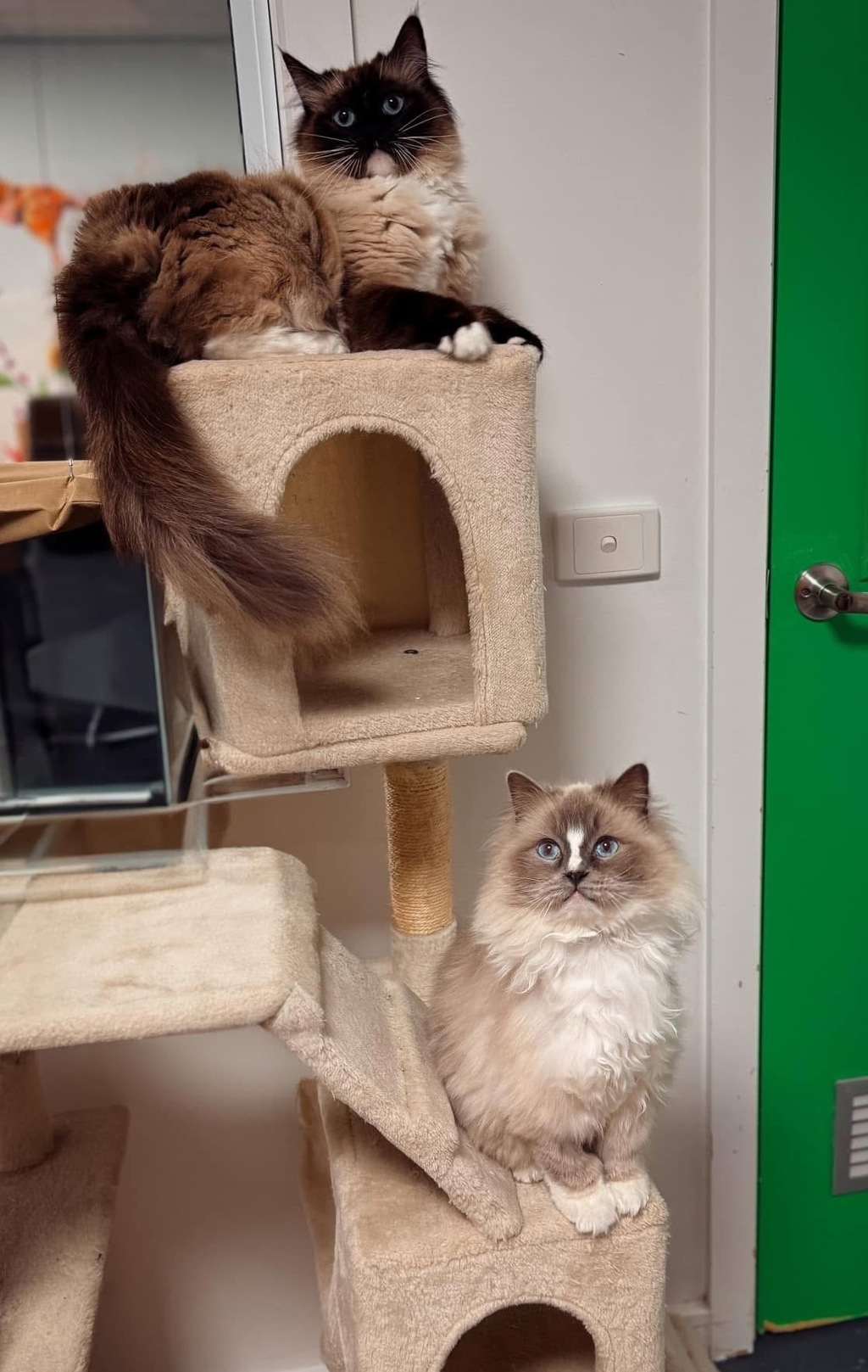 Maurice and Dot are a bonded pair of Ragdoll cats looking for their forever home. These two beautiful, affectionate cats share an inseparable bond and are as sweet as they come. Maurice is a handsome boy, and Dot is his devoted companion. Together, they make the perfect pair, always by each other's side.