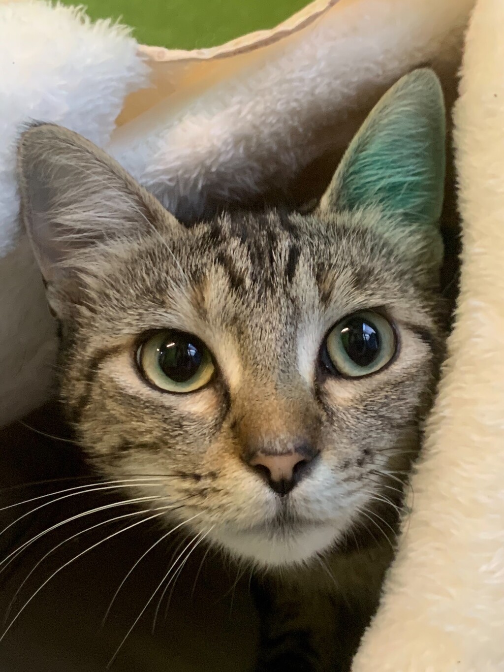 Meet Passionfruit! She is a timid and shy cat who requires a patient and understanding adopter. She would appreciate some time and patience to settle in to her new home. Passionfruit will benefit from a home that is predictable and is likely to build bonds with someone with gentle interactions that are reinforced with treats.