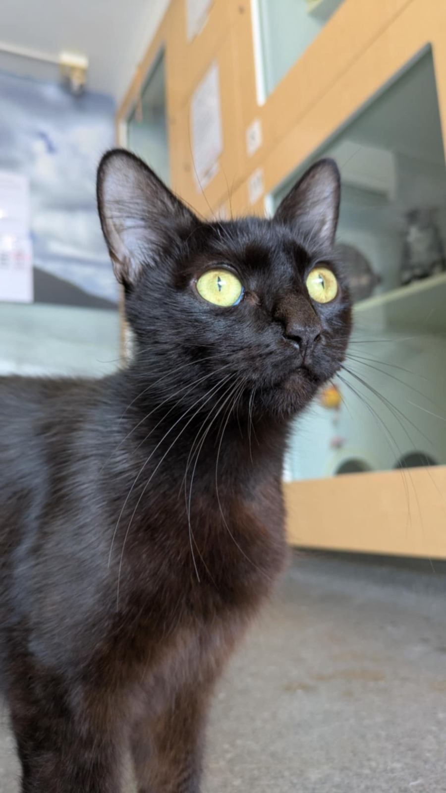 She enjoys curling up on her cat-tree and watching the world go by while waiting for someone to look her away and invite her over for pats. She's a simple girl with an incredibly loving nature.