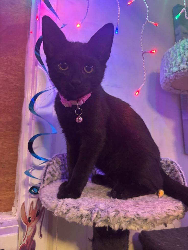 Whiskers is a real sweetheart. She enjoys playing and rubbing against your feet for some cuddles. Whiskers is always first to the bowl and then runs up her cat pole to get back to playing. Whiskers isn’t the biggest fan when it comes to getting picked up; she’d rather come to you, but she loves a good cuddle on her terms.