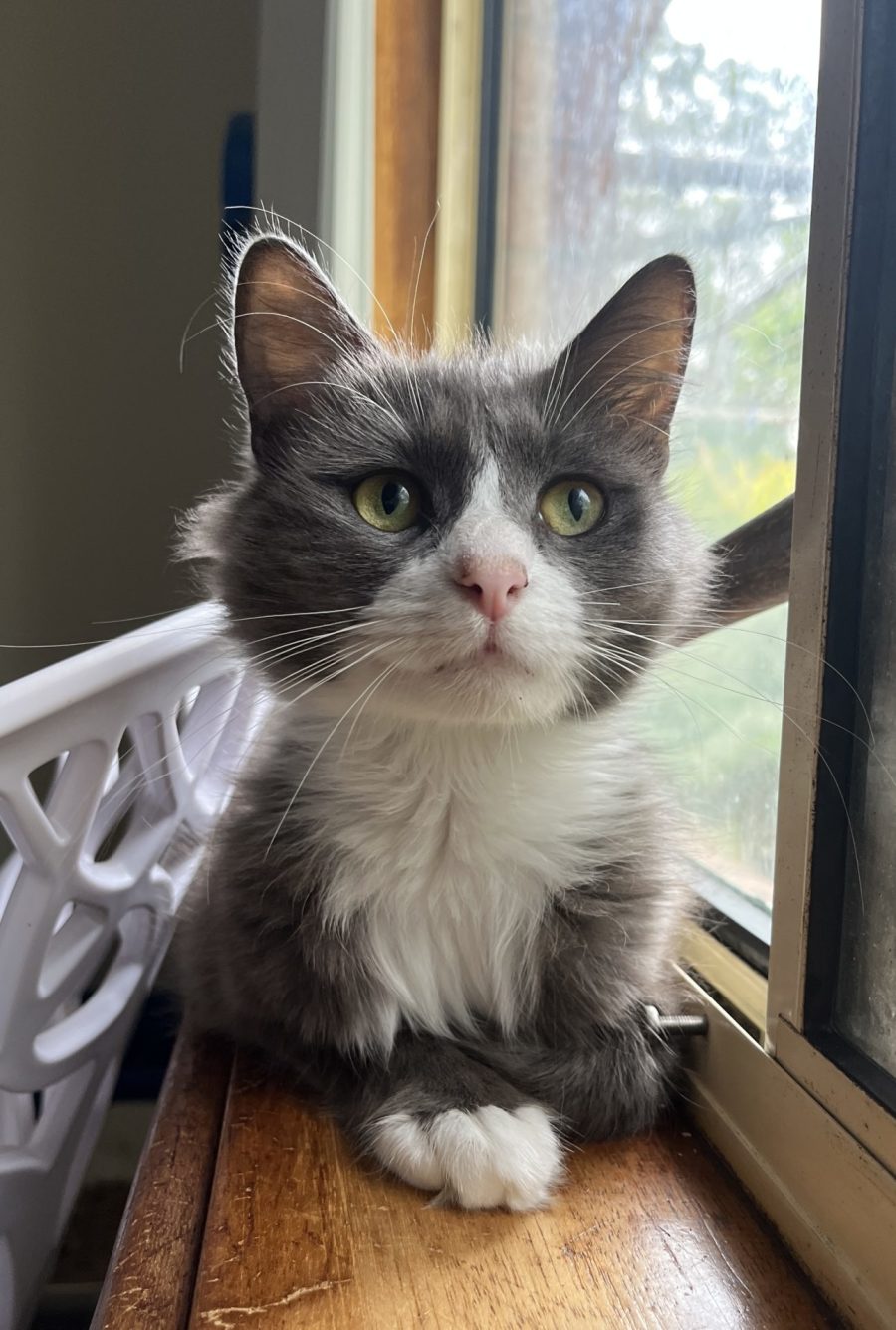 Gigi is a beautiful grey and white cat who is sure to win your heart. She is super affectionate and happy around new people and not phased in new surroundings. Gigi loves nothing more than to get attention and affection. She spends most of her days snoozing in a comfy spot. Gigi loves sleeping snuggled up close to you and is very respectful of your sleep time - she'll nap until you're ready to get up!